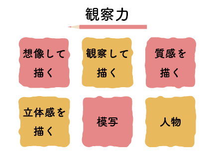 観察力と表現力を伸ばす観点から、主にこれらを学んでいきます。